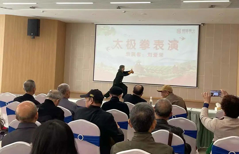 由劉老師表演太極拳,一動一靜,互為其根,此為太極拳之道理。入住老人們也十分喜歡太極拳這類強身健體的活動,老年大學教學實踐基地也將更加注重老年健康教學活動。