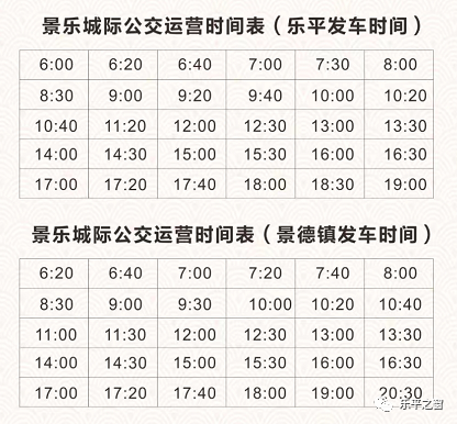 ▲景樂城際公交運(yùn)營時(shí)間表(發(fā)車時(shí)間)