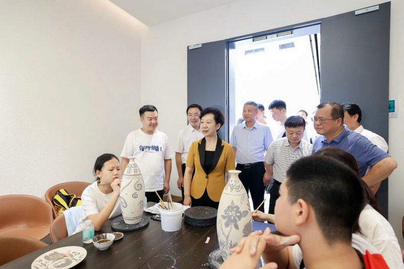 景德鎮(zhèn)藝美產(chǎn)業(yè)園項(xiàng)目以“陶瓷文化+”為核心,集藝術(shù)教育、研究、創(chuàng)作、交流、體驗(yàn)及高端美展為一體。胡雪梅來(lái)到該項(xiàng)目現(xiàn)場(chǎng),參觀了展陳展覽,聽(tīng)取了作品創(chuàng)意、設(shè)計(jì)等介紹,并考察了研學(xué)基地情況。她叮囑有關(guān)平臺(tái)公司要樹(shù)立文創(chuàng)品牌,明晰市場(chǎng)定位,盡快實(shí)現(xiàn)優(yōu)質(zhì)產(chǎn)品的量產(chǎn)。