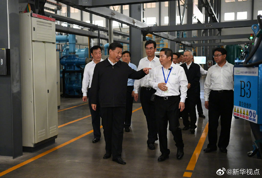 習(xí)近平總書記20日赴江西考察調(diào)研。他首先考察了位于贛州市的江西金力永磁科技股份有限公司,了解企業(yè)生產(chǎn)經(jīng)營(yíng)和贛州市稀土產(chǎn)業(yè)發(fā)展情況。(文字:張曉松 攝影:鞠鵬、謝環(huán)馳)
