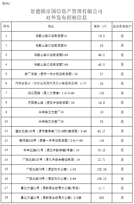 景德鎮(zhèn)市國信資產(chǎn)管理有限公司 對外發(fā)布招租信息[12.13]